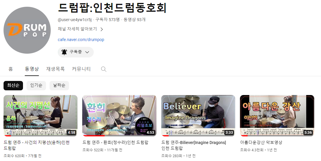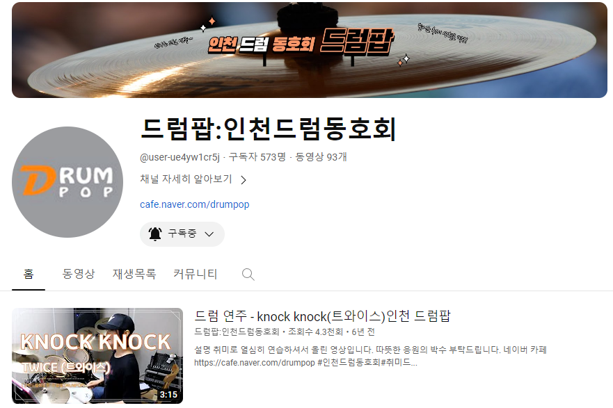 💡 드럼팝은 네이버 카페와 회원들의 연주 영상을 볼 수 있는 유튜브를 운영하고 있어요. 관심있으신 분들은 방문해 보세요~