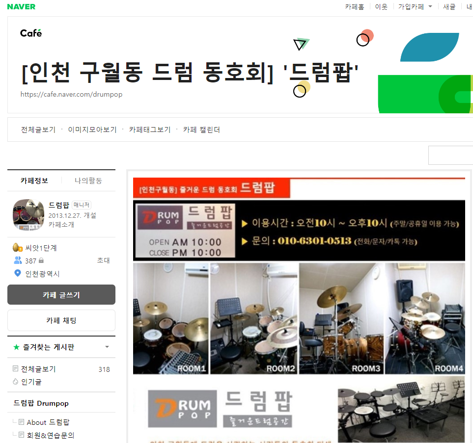 [인천 구월동 드럼 동호회] '드럼팝' : 네이버 카페